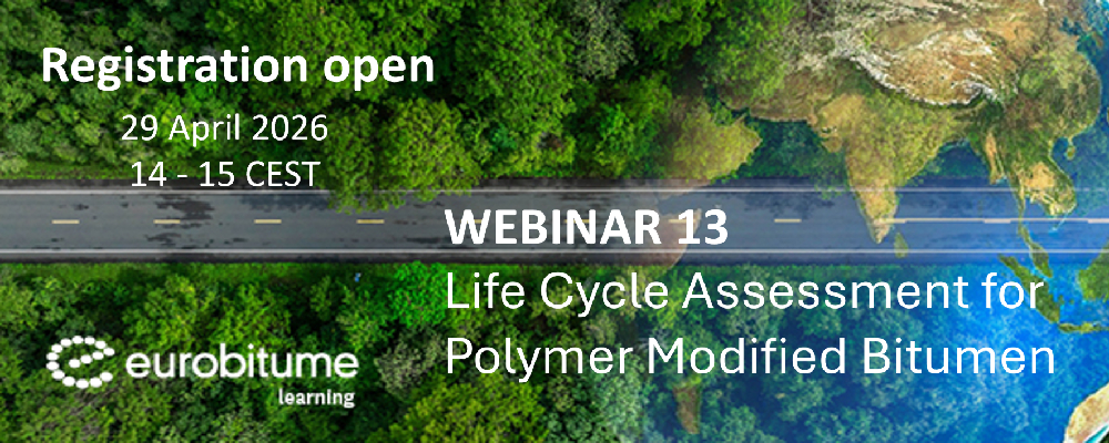 Seminario web «Open to All» de Eurobitume: LCA for Polymer Modified Bitumen Viernes, 29 de abril de 2026, de 14:00 a 15:00 CEST (13:00 – 14:00, hora del Reino Unido)…